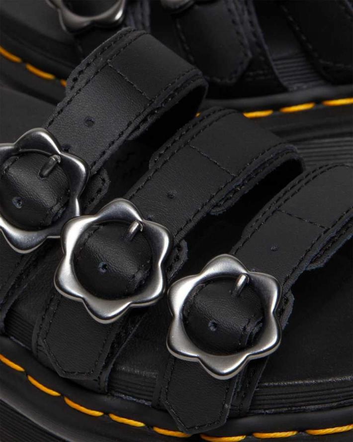 Blaire — Docs Version einer entspannten Sandale. Hergestellt aus glattem, mattem PU-beschichtetem Hydro-Leder. Die 3 Riemen Design Sandalen sitzen auf einer super leichten, geblasenen EVA-Sohle, kommen mit Blumen-Schnallen und sind mit unseren charakteristischen gelben Nähten vernäht. Sei wild.