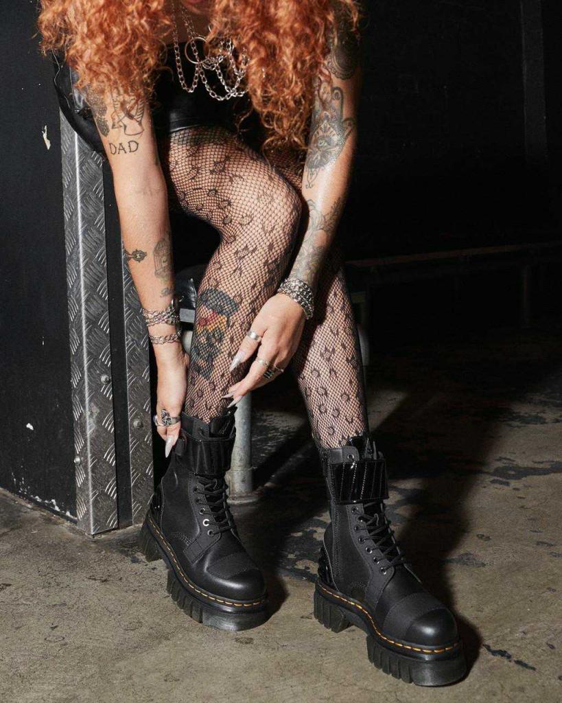 Dieser weiterentwickelte Plateau vereint die Höhe unserer bekannten Quad-Sohle in einem leichten Gewicht. Die Quad Neoteric-Sohle verfügt über eine leichte EVA-Zwischensohle, eine PVC-Außensohle mit tiefen, robusten Stollen und eine überarbeitete Version unseres typischen DM’s-Profilmusters