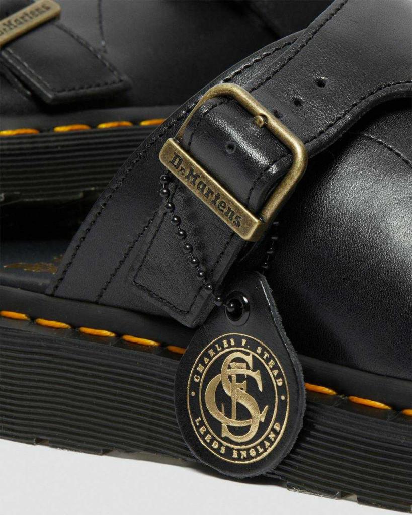 Entworfen für den Sommer. Handgefertigt in England. Die Dayne Sandale ist aus C.F. Steads vollnarbigen, klassischen schwarzen Kalbsleder gefertigt. Dieser Slip-On verfügt über antike Goldschnallen und unsere ikonische gelbe Rahmennaht. Jedes Paar ist mit einer Smoke Shore-Sohle, einem weichen Lederfußbett und einem Logo-Lederanhänger versehen. Komplett mit DM’s charakteristischen Komfort, Langlebigkeit und Attitüde das ganze Jahr über.