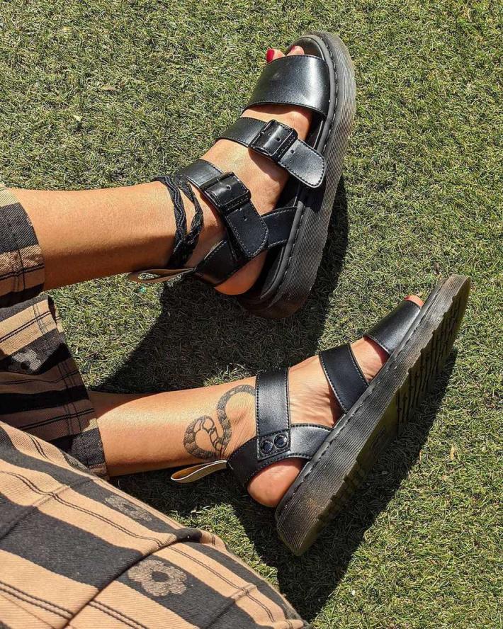 Ihr habt nachgefragt, wir haben zugehört. Wir haben unsere vegane Kollektion um eine überarbeitete Gryphon Sandale erweitert. Dieses minimalistische Design mit zwei Riemen ist mit haufenweise Docs Attitüde und unseren sofort erkennbaren Merkmalen vollgepackt: gerillte Kanten, sichtbare Nähte und eine beschriftete Fersenschlaufe.