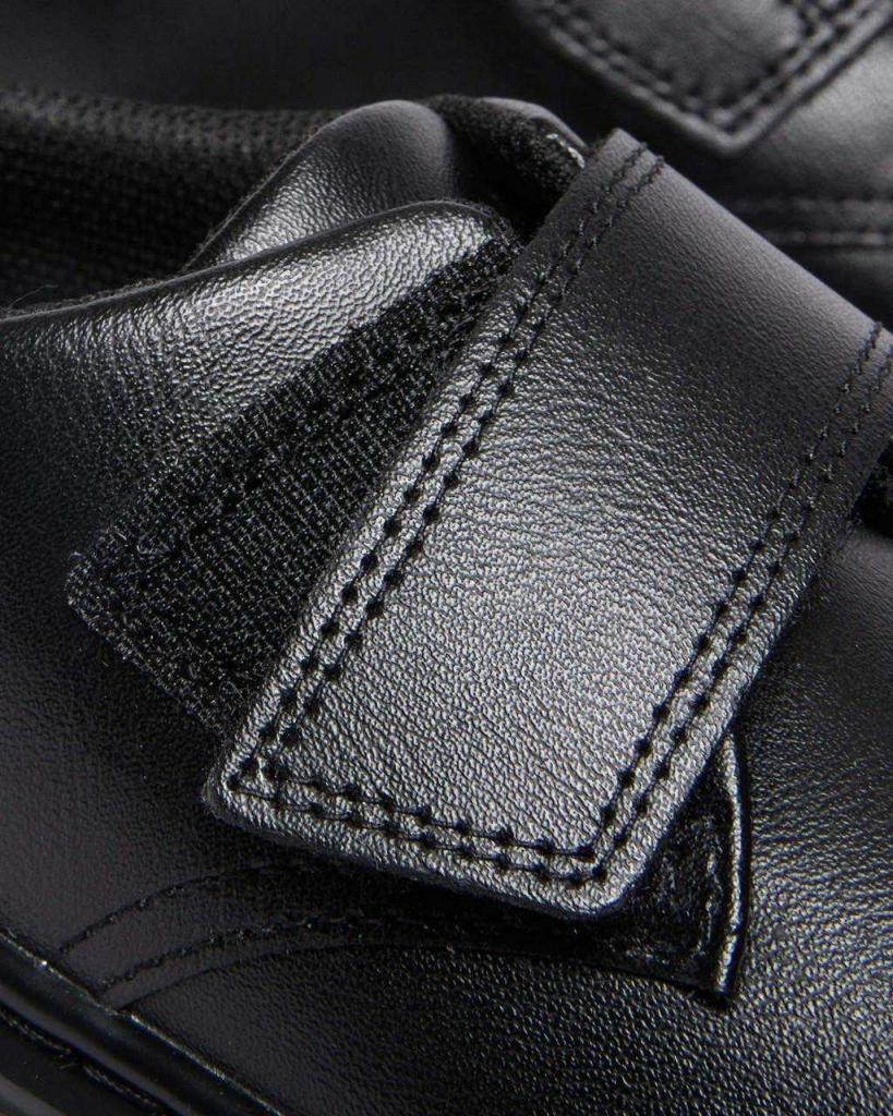 Dieser Schuh aus mattem Leder für kleine Rebellen bietet einen VELCRO® Klettverschluss für einfaches An- und Ausziehen sowie klassische Dr. Martens Stilelemente, darunter gelbe Nähte und geriffelte Seiten. Erhältlich in den Kindergrößen 28–36.