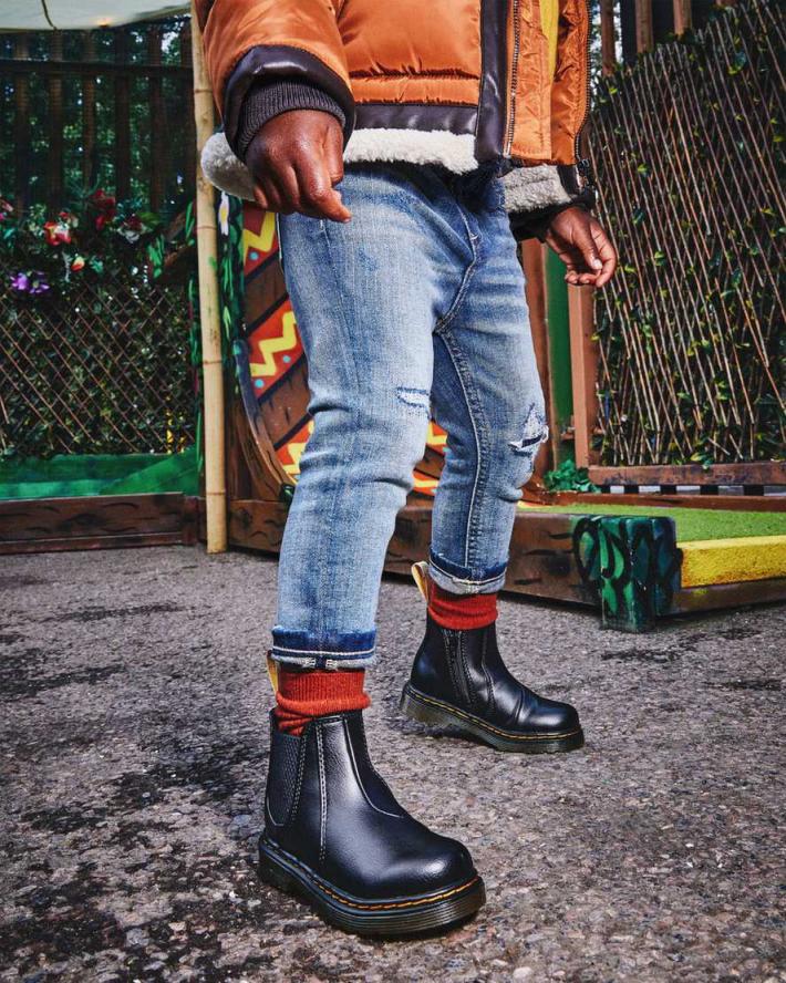 Unsere ersten veganen Stiefel – für die nächste Generation. Diese 2976 Chelsea Boots sind aus einem neuen Synthetikleder gefertigt, das echt aussieht, mit einem leichten Pull-Up und einem weichen, gewalkten Finish. Robust gebaut wie alle Schuhe von DM’s, mit zusätzlichen Features für kleine Füße, haben sie einen einfachen seitlichen Reißverschluss und sitzen auf einer flexiblen Neuauflage unserer klassischen luftgepolsterten Sohle. Die Stiefel sind mit kontrastierenden Ösen und einer Sonderedition unserer klassischen AirWair Fersenschlaufe versehen, um sie als vegan zu kennzeichnen.